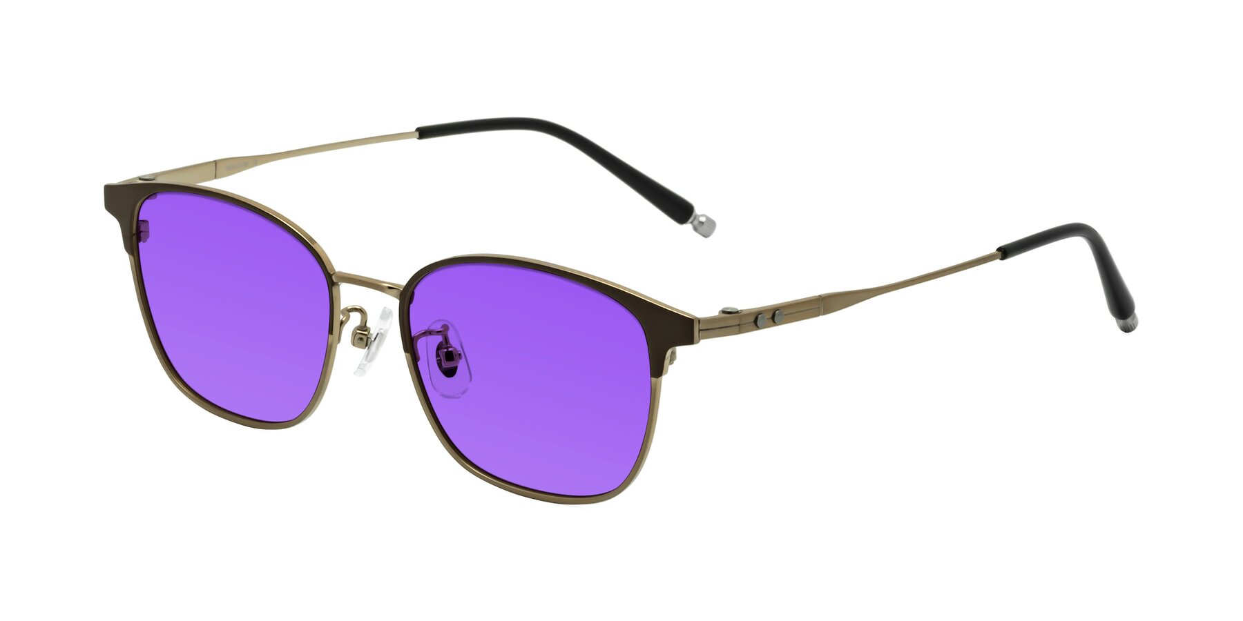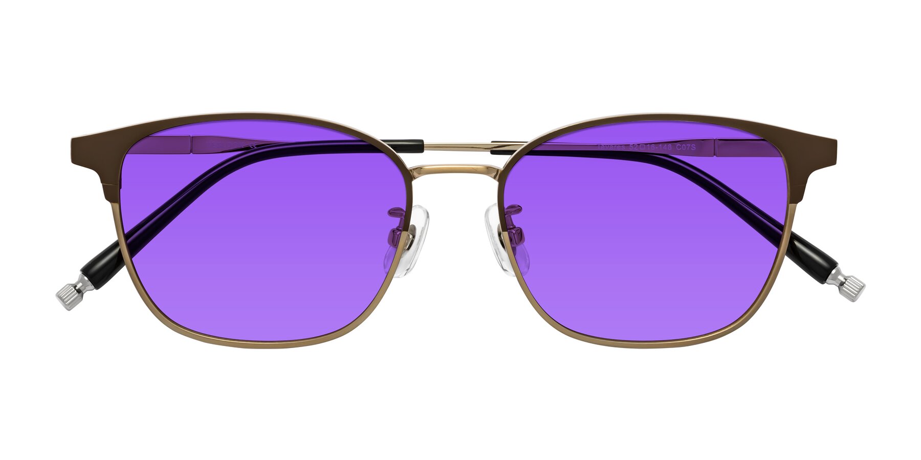 Coffee Gunmetal/Bronze Classic Browline Titanium Tinted Sunglasses with Purple Sunwear Lenses