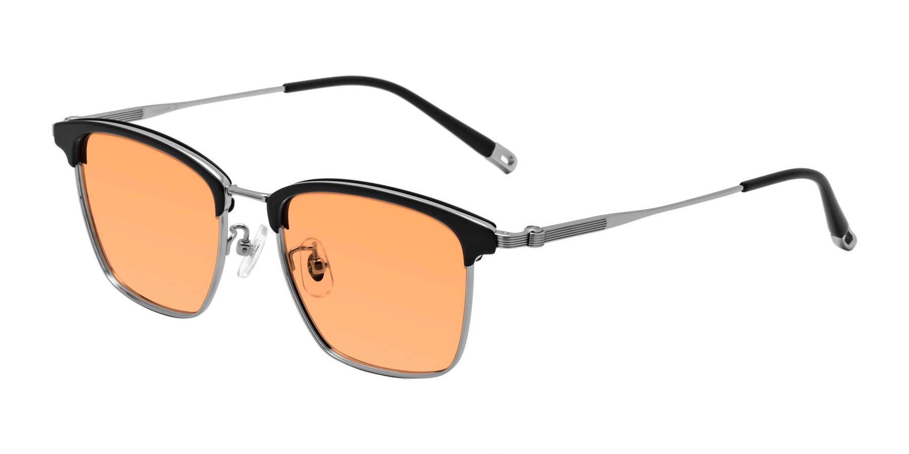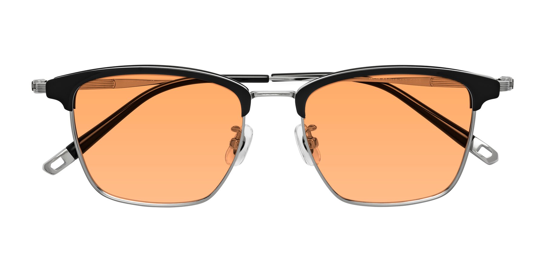 Black/Silver Browline Titanium Square Tinted Sunglasses with Medium Orange Sunwear Lenses
