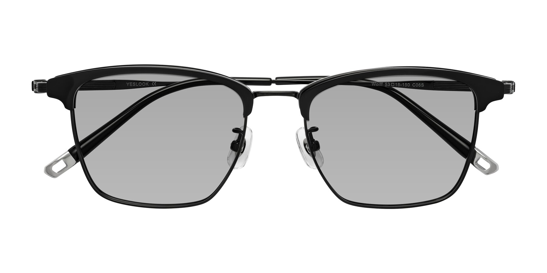 Black Browline Titanium Square Tinted Sunglasses with Light Gray Sunwear Lenses