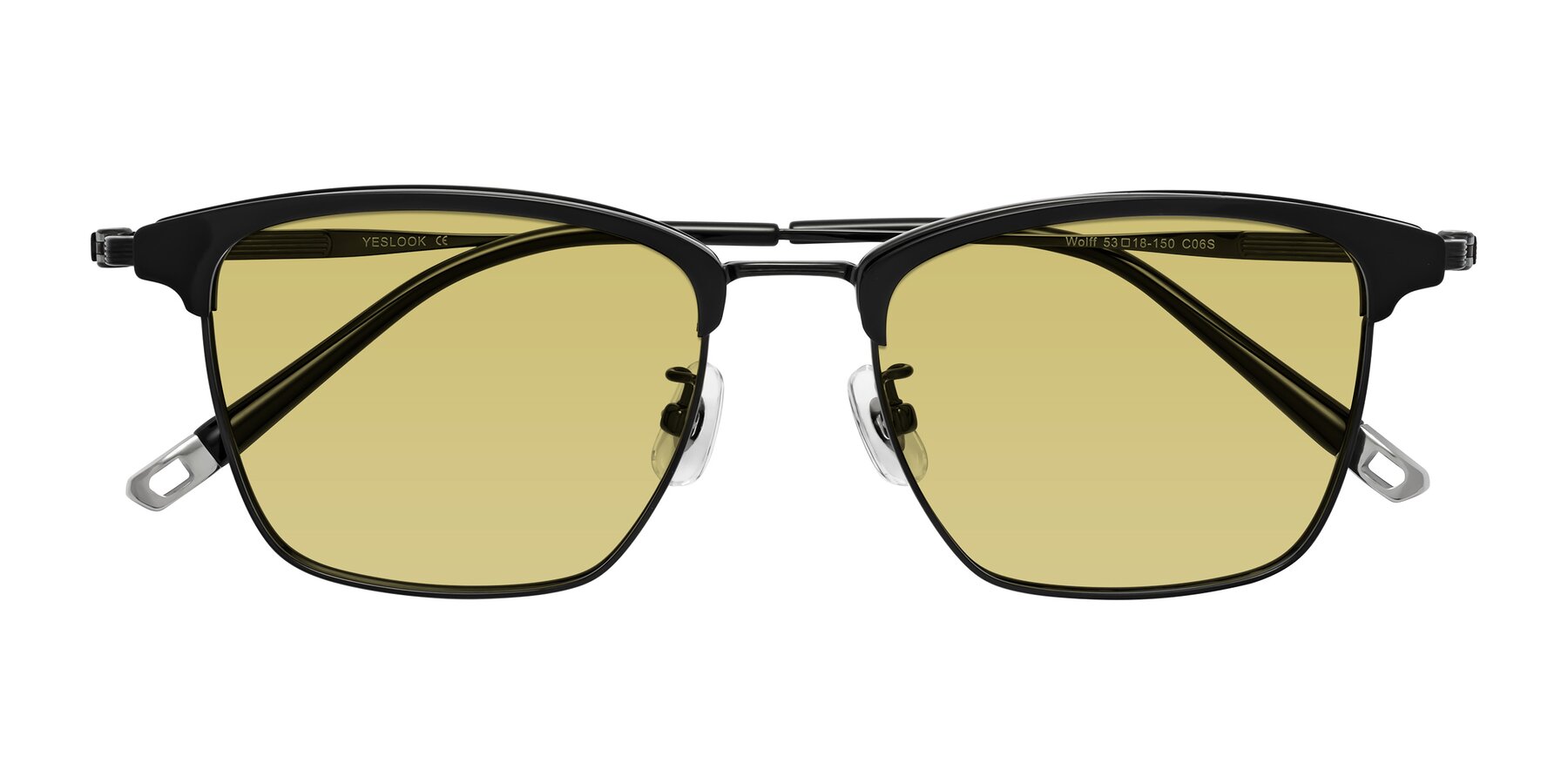 Black Browline Titanium Square Tinted Sunglasses with Medium Champagne Sunwear Lenses